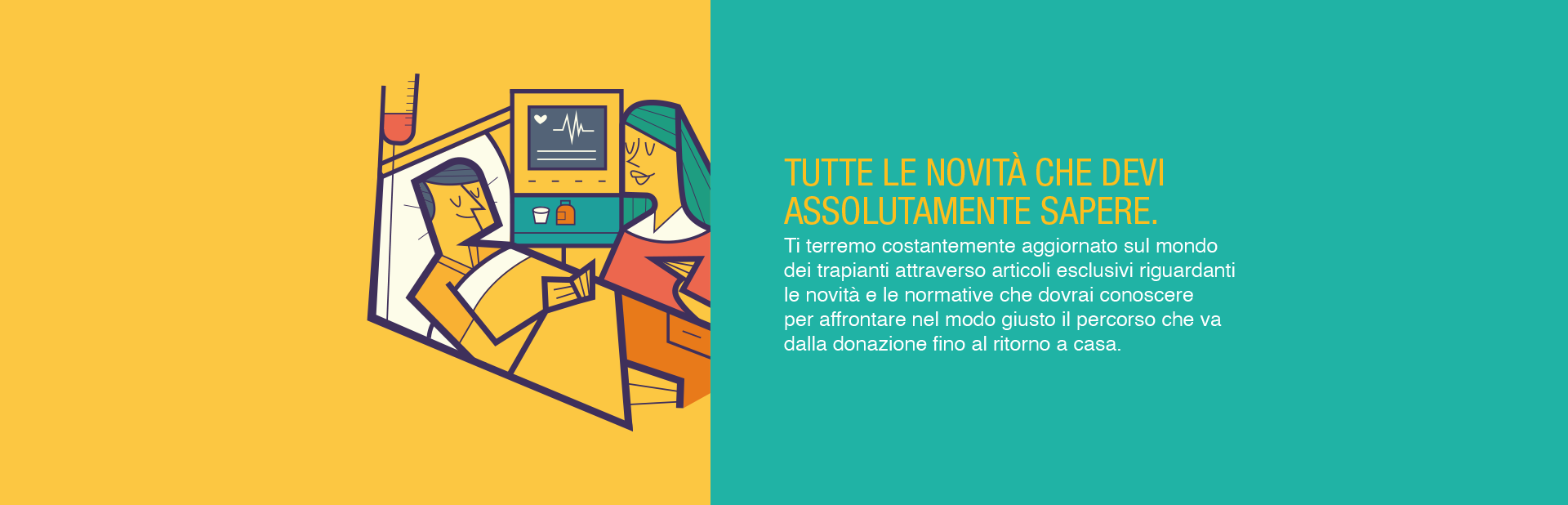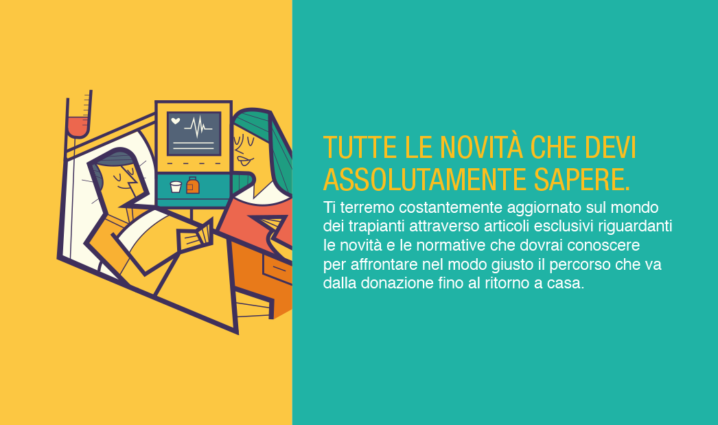 Le campagne di sensibilizzazione, le novità legislative e i corretti stili di vita, le storie e le testimonianze dei trapiantati, i consigli pratici, le informazioni legali e i link di approfondimento. Tutti i contenuti sono curati da un pool di specialisti che lavorano per favorire la relazione umana tra i protagonisti di una storia di trasformazione: il trapianto.